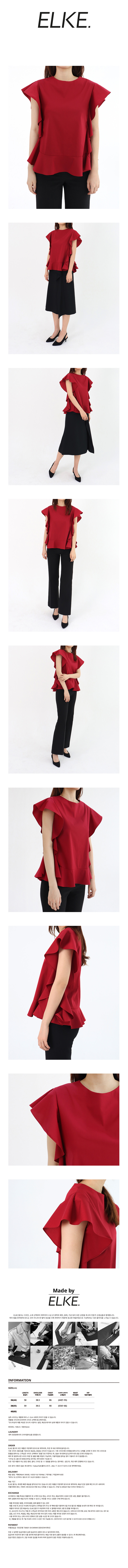 - 어깨선 부터 아래 햄라인까지 흐르는 러플디테일이 돋보이는 블라우스입니다.