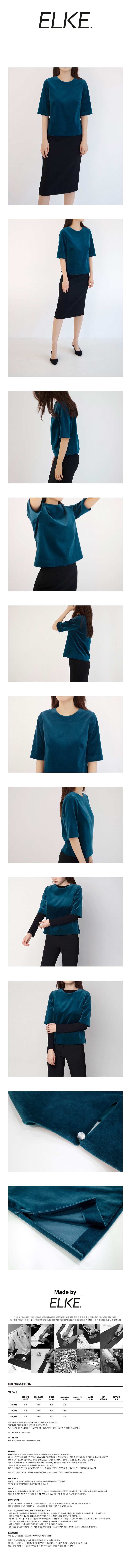 - 하프 소매로 벨벳의 우아함이 그대로 느껴지는 벨벳 탑입니다.